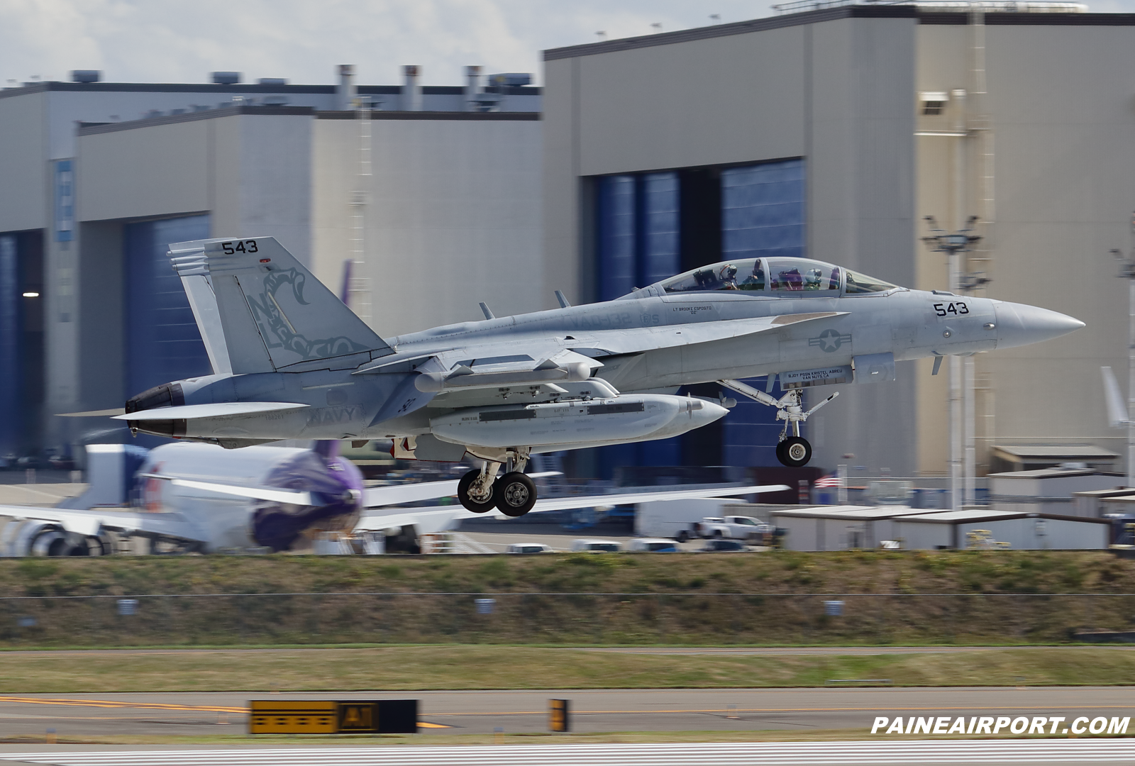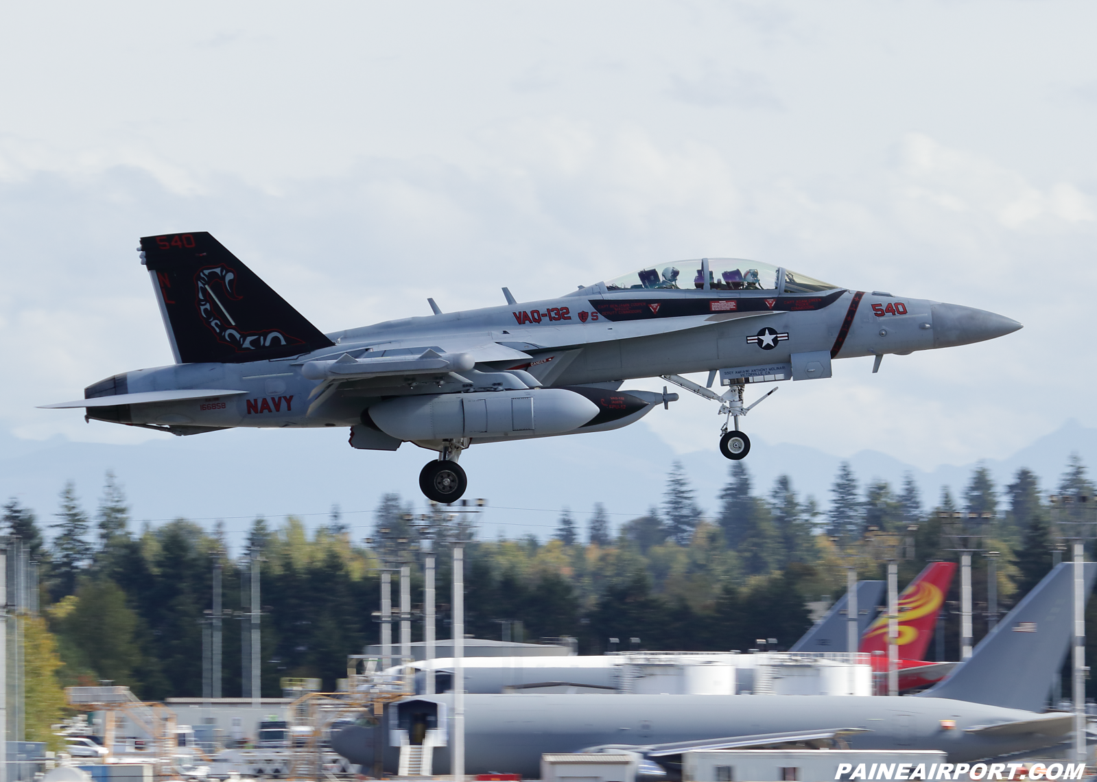 SCORP11 flight of two VAQ-132 Growlers landed at Paine Field. This is BuNo 166858.